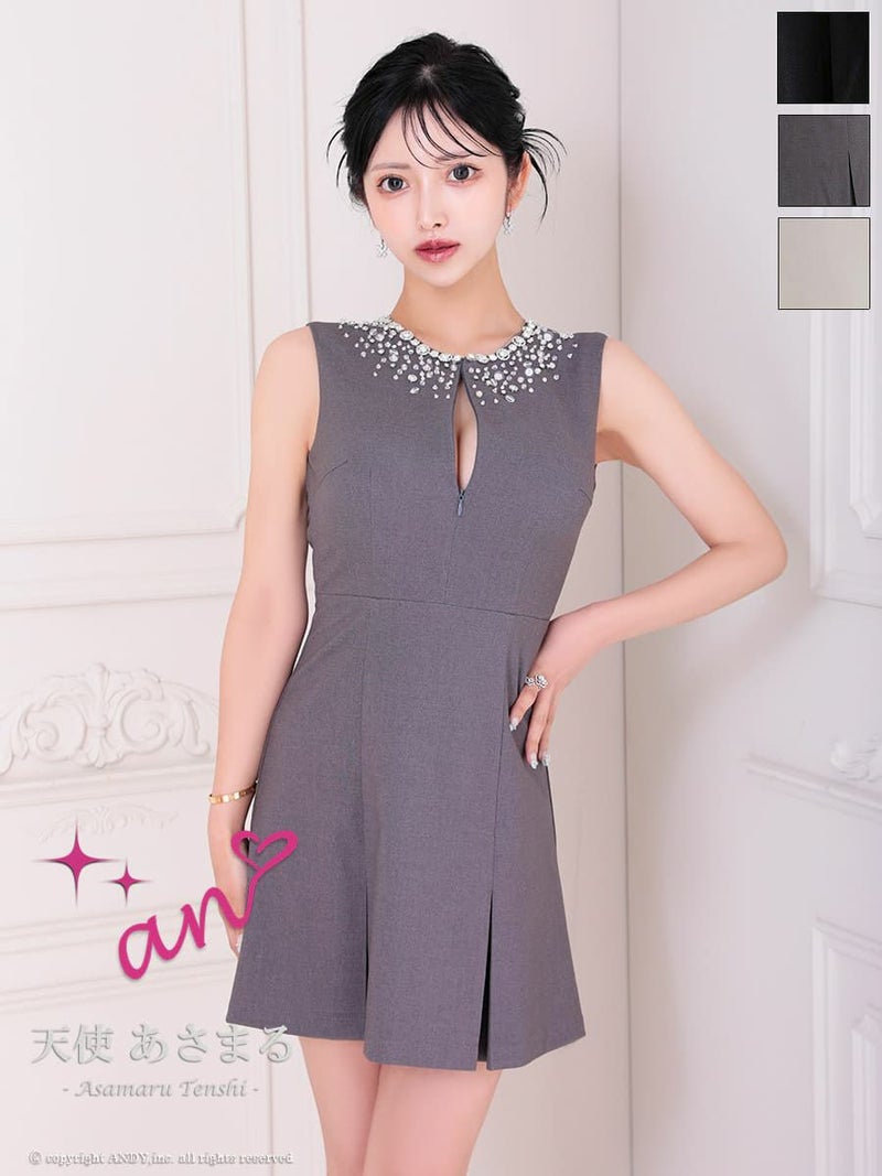 キャバドレス An アン 高級 ノースリーブ ビジュー 背中魅せ ボックスプリーツ ジップデザイン フレアミニドレス