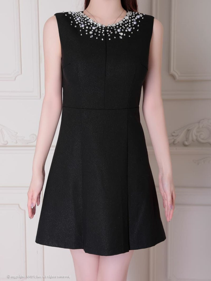 5. [an/アン] 高級 ノースリーブ ビジュー 背中魅せ ボックスプリーツ フレアミニドレス