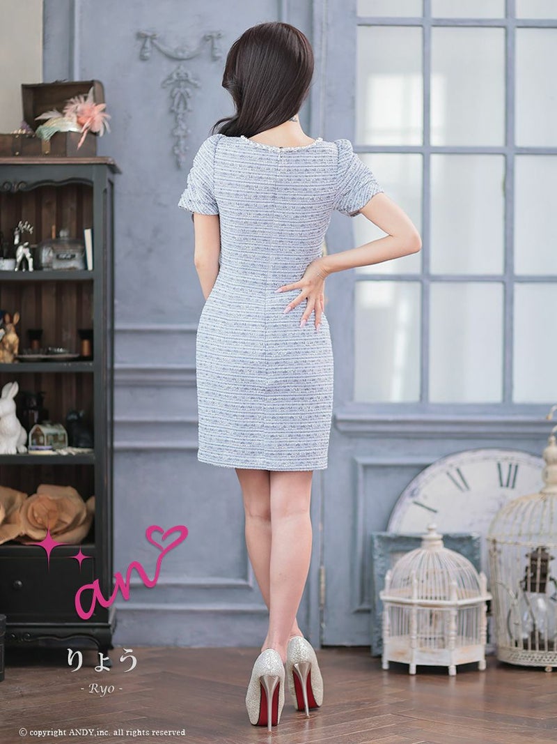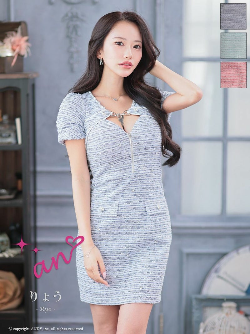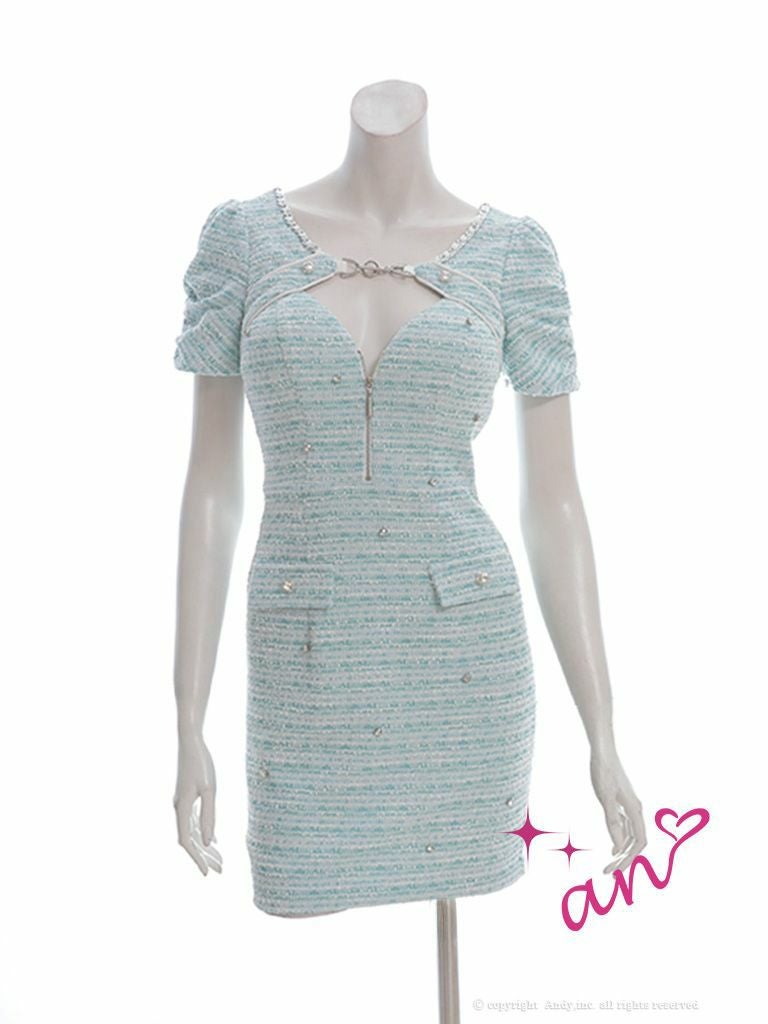 キャバドレス Andy アンディ 高級 半袖 パール ジップデザイン バストカット ビジュー ツイード ポケット タイトミニドレス