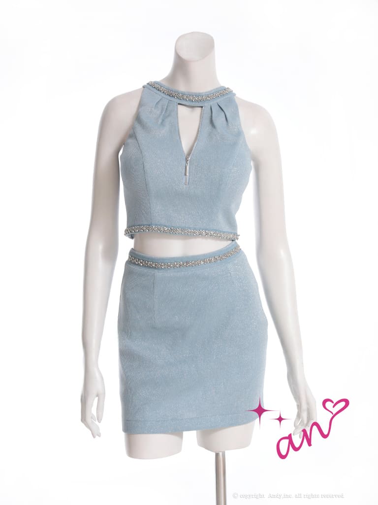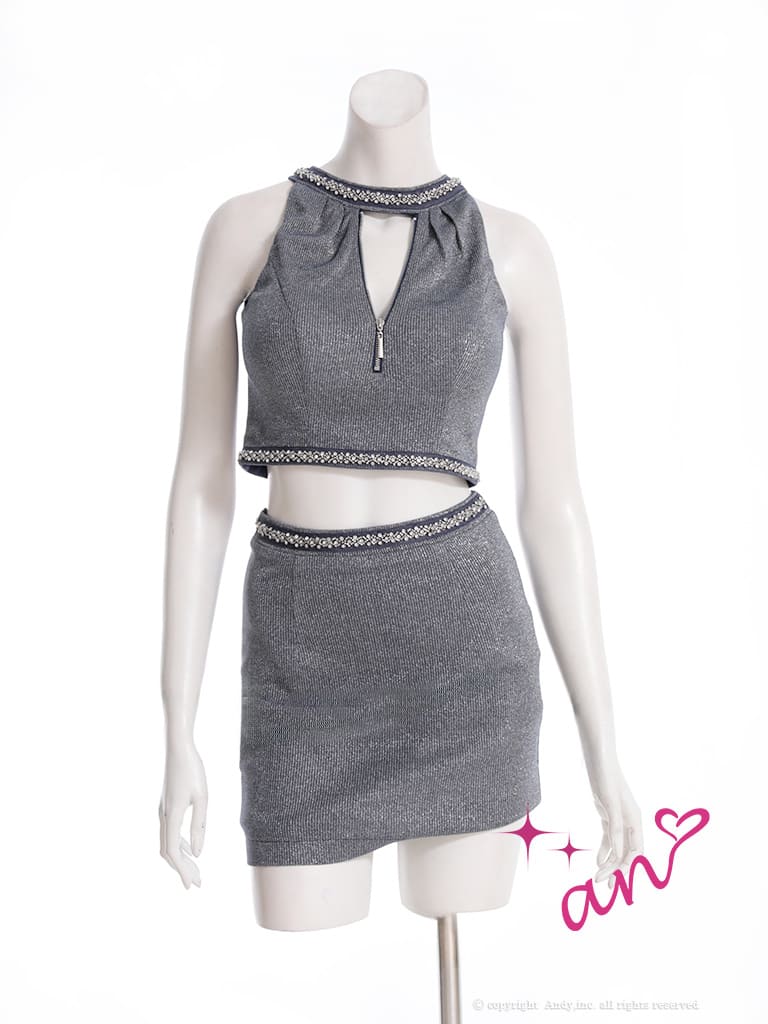 4. [an/アン] 高級 ホルターネック バストカット ジップデザイン ビジュー セットアップ タイトミニドレス