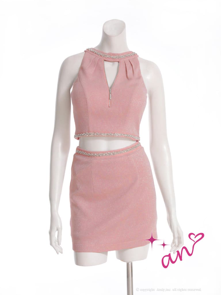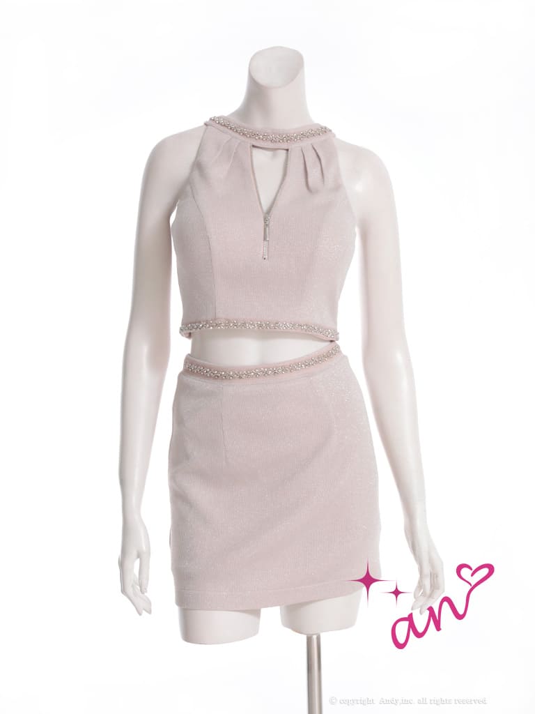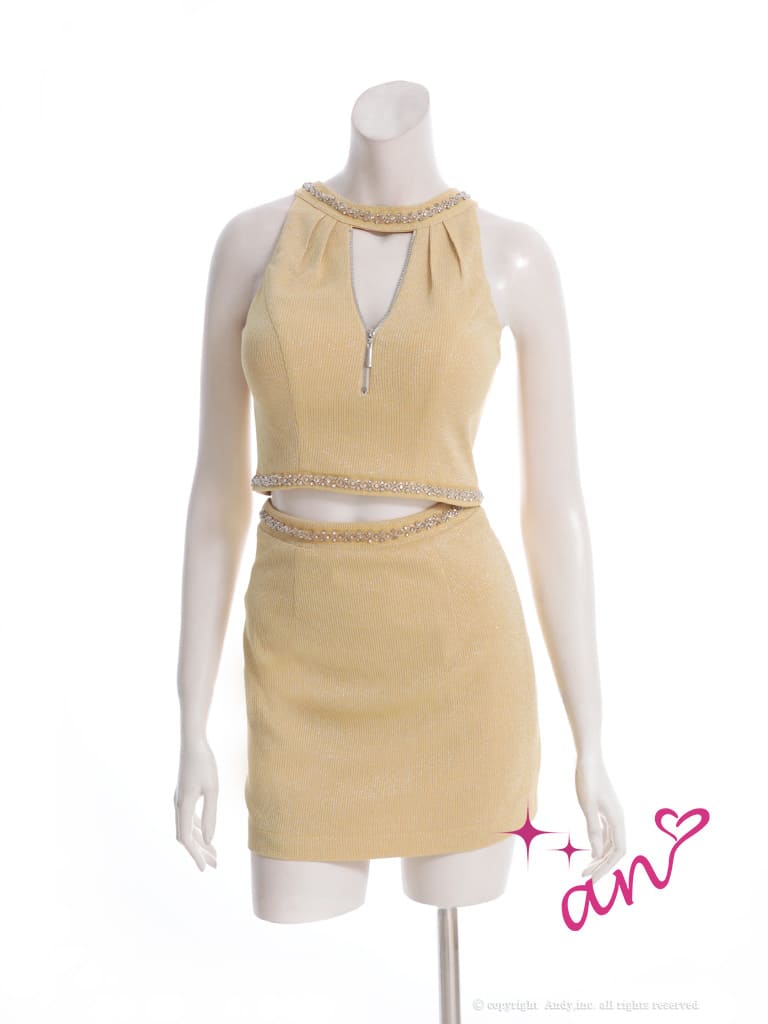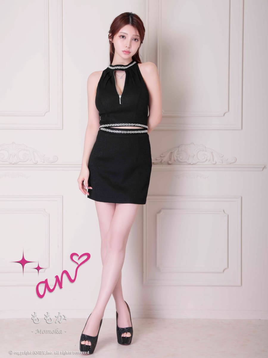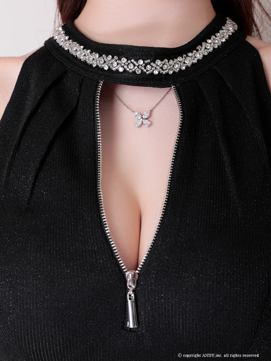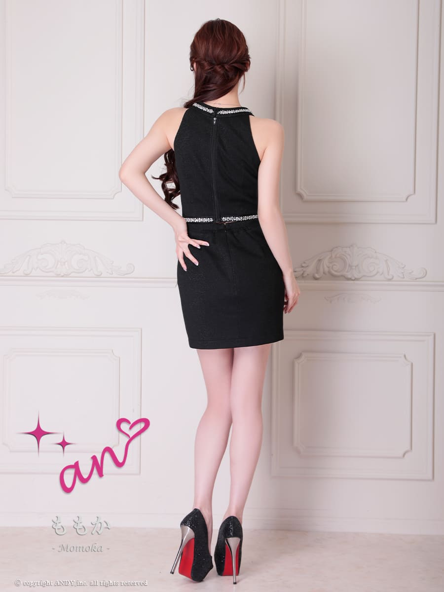キャバドレス Andy アンディ 高級 ホルターネック バストカット 肩あき ジップデザイン ビジュー セットアップ タイトミニドレス