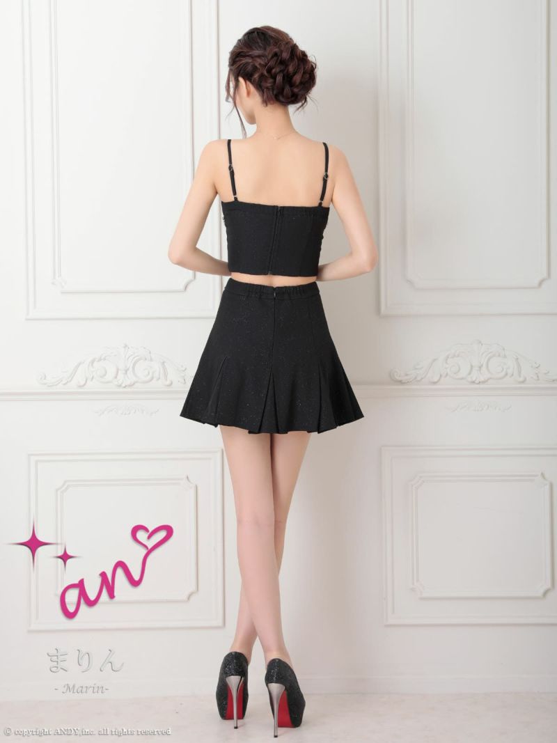 キャバドレス an アン 高級 キャミソール ワンカラー セットアップ ジップデザイン ビジュー リボン プリーツ フレア ミニドレス