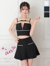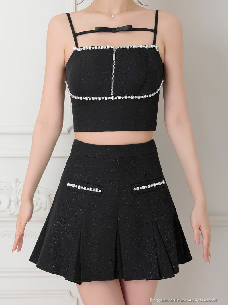 5. [an/アン] 高級 キャミソール ワンカラー セットアップ ジップデザイン ビジュー リボン プリーツ フレア ミニドレス