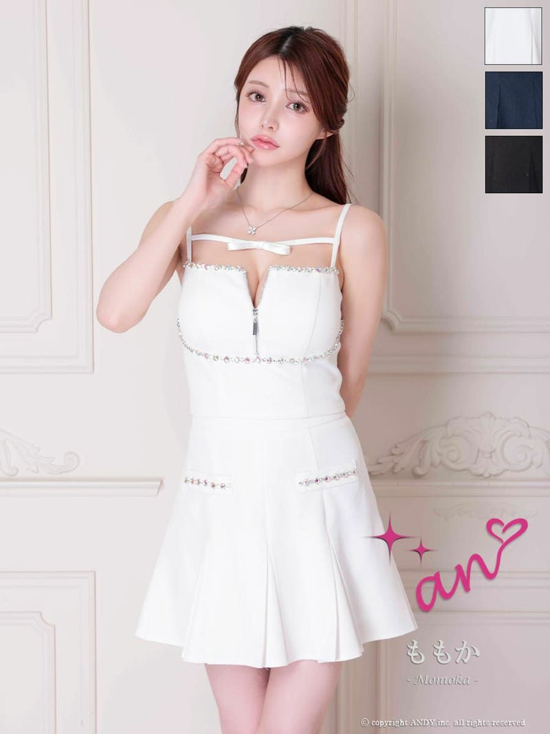 キャバドレス an アン 高級 キャミソール ワンカラー セットアップ ジップデザイン ビジュー リボン プリーツ フレア ミニドレス