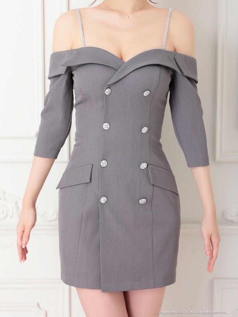 6. [an/アン] 高級 肩出し 二の腕カバー 袖あり ボタン ビジューショルダー ジャケット風 タイトミニドレス