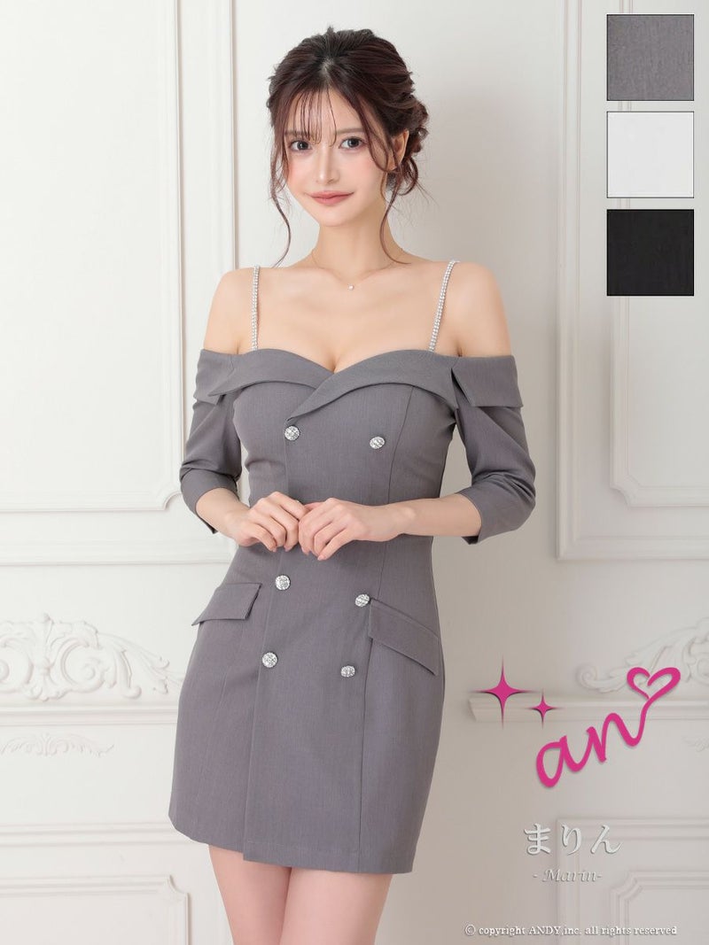 キャバドレス an アン 高級 肩あき 袖あり ボタン ビジューショルダー ジャケット風 タイトミニドレス
