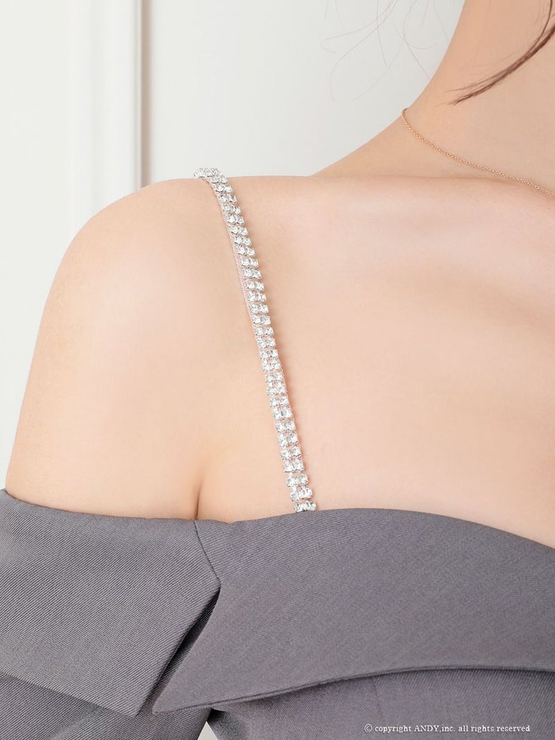 5. [an/アン] 高級 肩出し 二の腕カバー 袖あり ボタン ビジューショルダー ジャケット風 タイトミニドレス