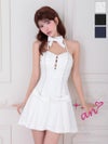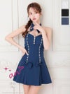 5. [an/アン] 高級 ホルターネック 2way ワンカラー バストカット ビジュー リボン フレア ミニドレス