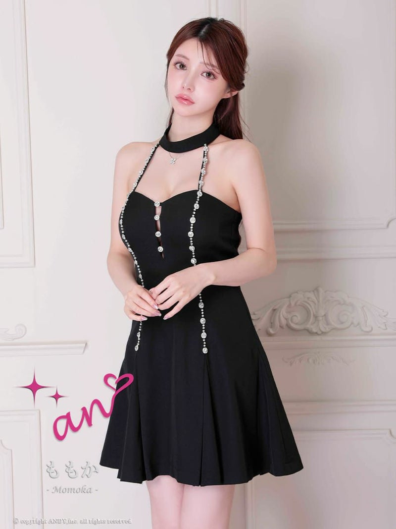 キャバドレス an アン 高級 ホルターネック 2way ワンカラー バストカット ビジュー リボン フレア ミニドレス