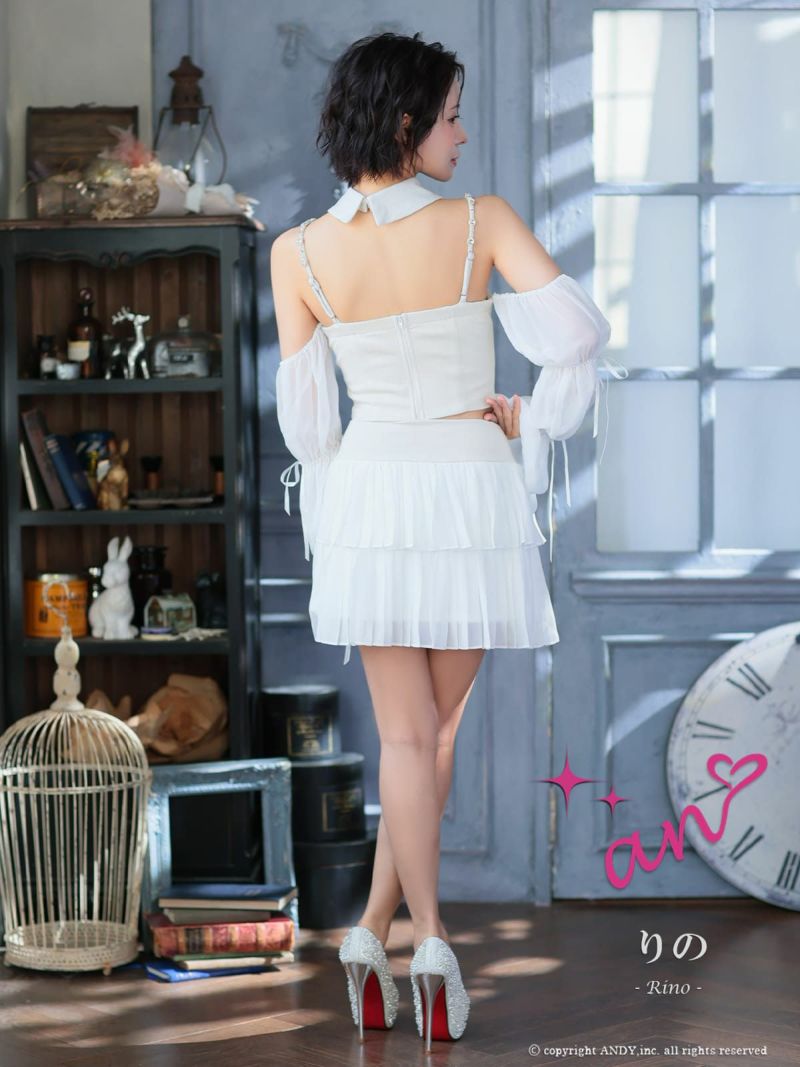 キャバドレス an アン 高級 Aライン ミニドレス 谷間 セットアップ キャミソール 袖あり 襟付き 3way