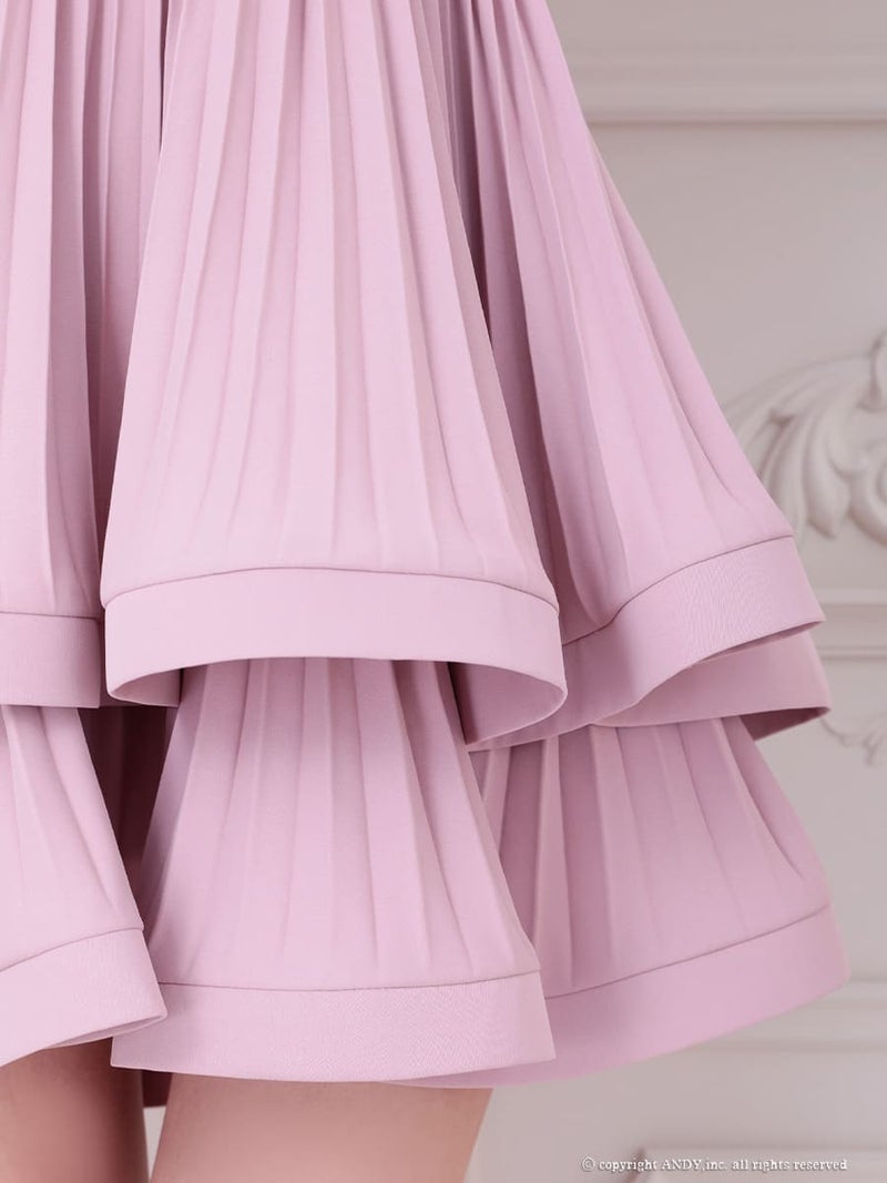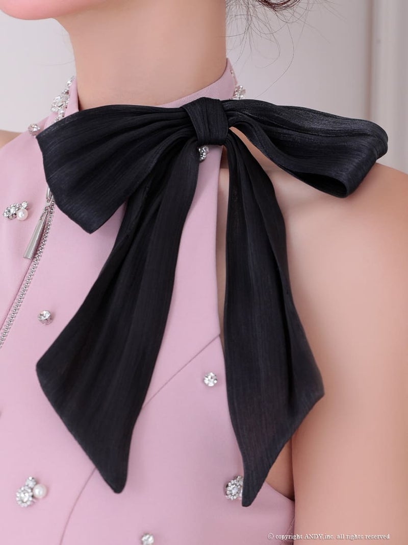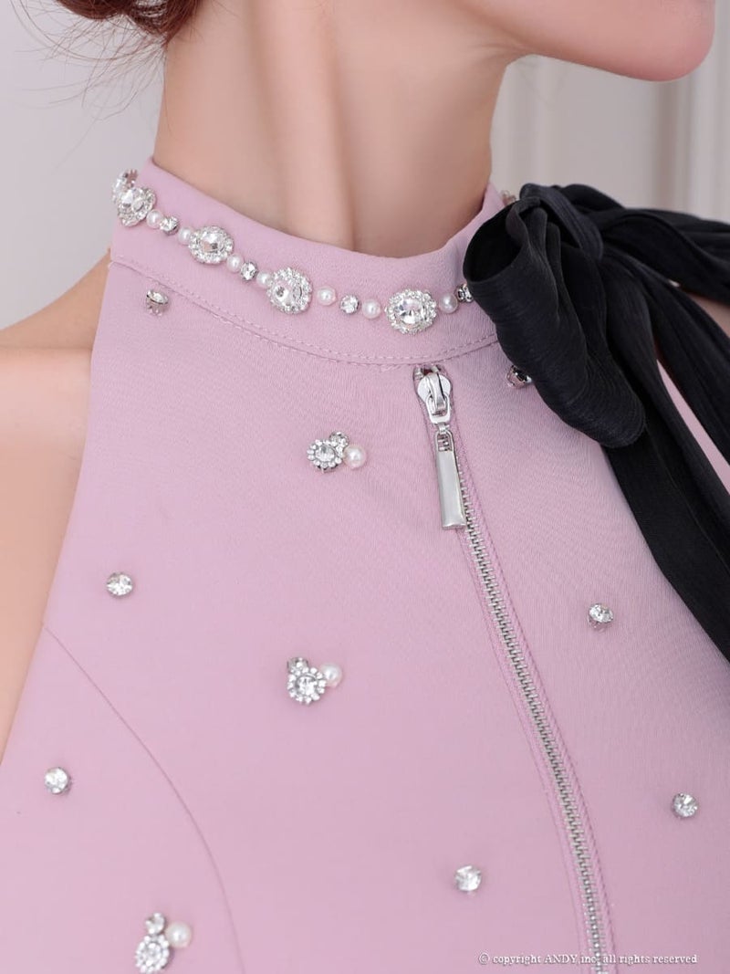 5. [an/アン] 高級 ホルターネック バストジップ リボン ビジュー ティアード フレアミニドレス