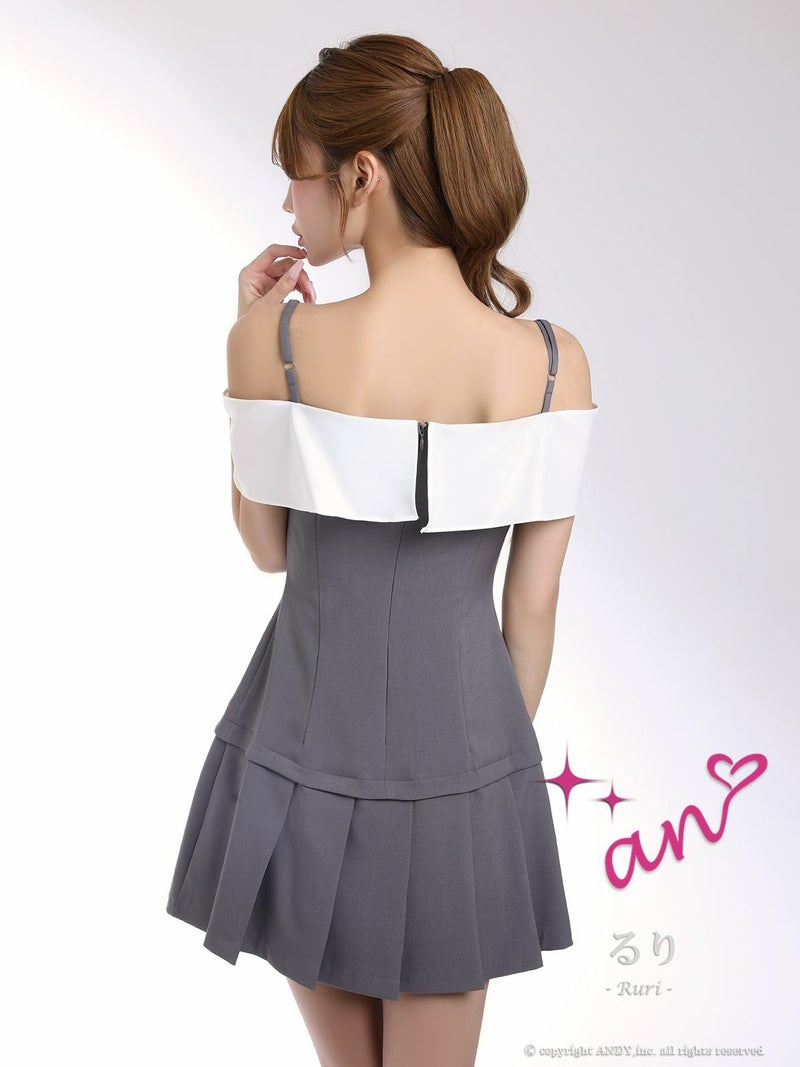 5. [an/アン] 高級 ブランド ミニドレス Aライン リボン 同伴 肩あき ビジューボタン プリーツスカート キャバドレス [andy-md-aoc3962z]