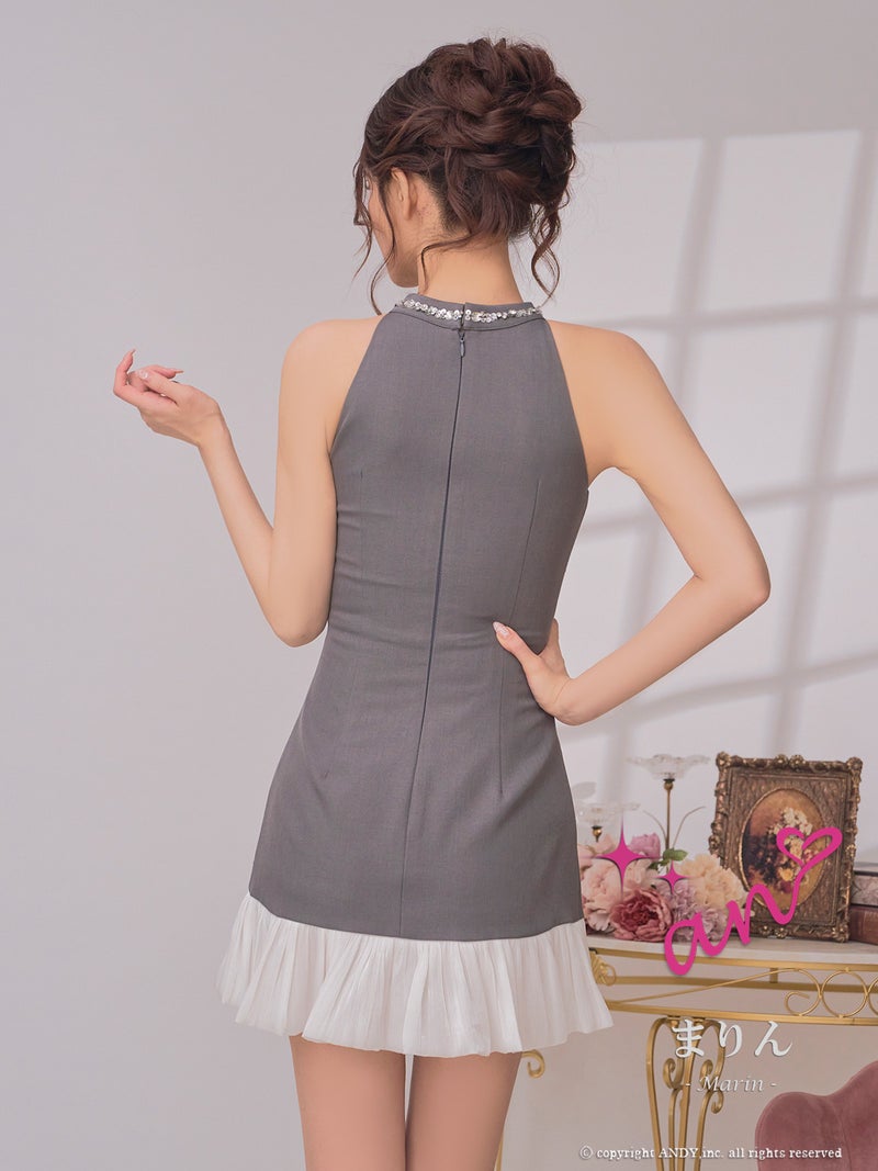 5. [an/アン] 高級 ブランド Aラインミニドレス ホルターネック バストジップ リボンデザイン ビジュー
