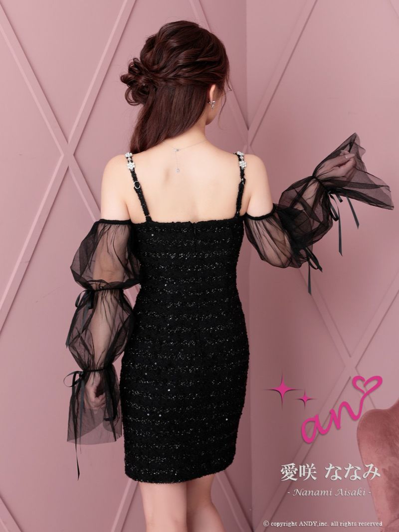 4. [an/アン] 高級 タイト ミニドレス 長袖 谷間 キャミソール 肩出し 二の腕カバー ジップ 2way 取り外し可能