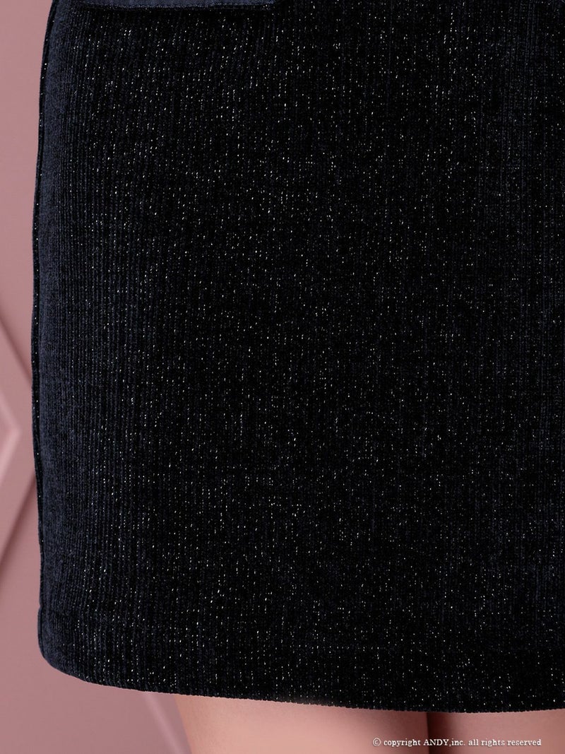 5. [an/アン] 高級 ブランド タイトミニドレス ベアトップ 谷間 キャミソール ジップ ベロア風 ポケット風デザイン チェーンパイピング