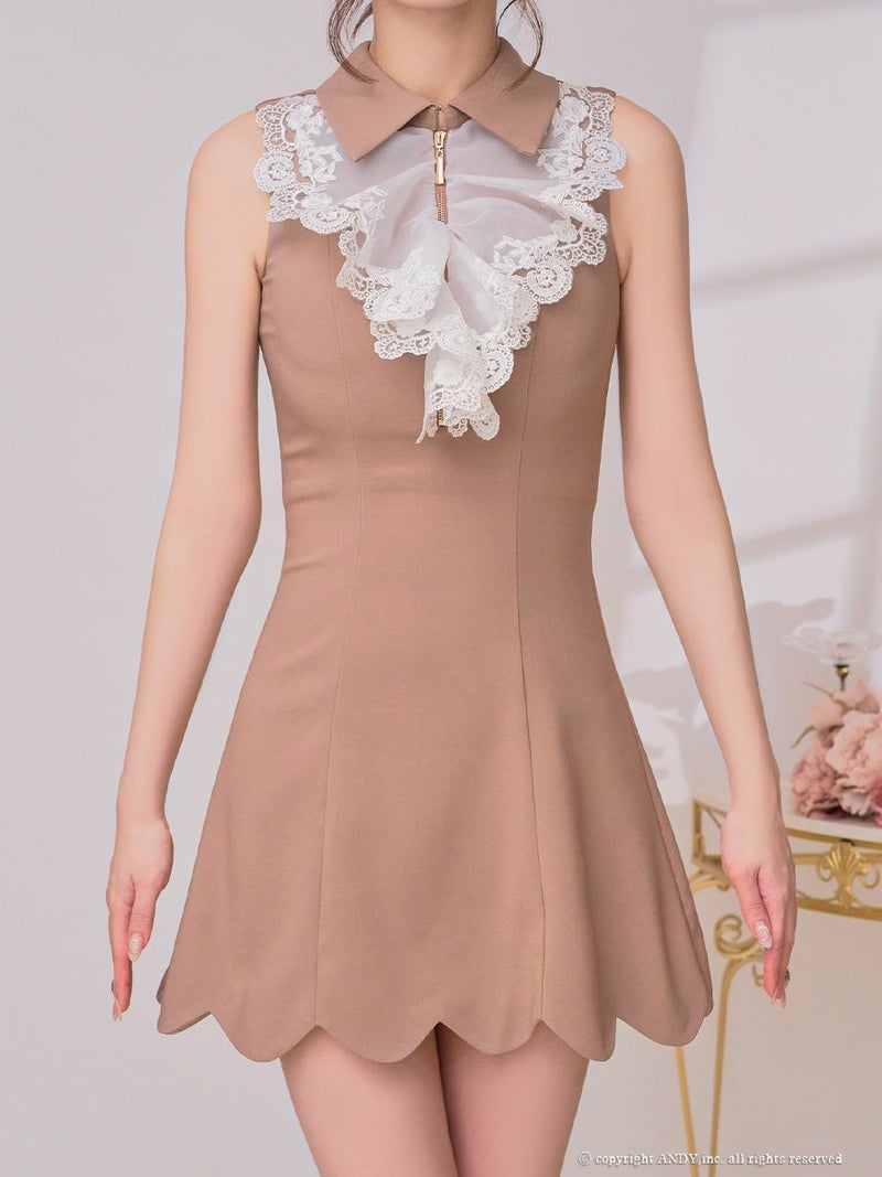 キャバドレス an アン  高級 ブランド ワンピース Aライン ミニドレス レース ノースリーブ 襟付き ジップ ブラジャーのまま バストカット