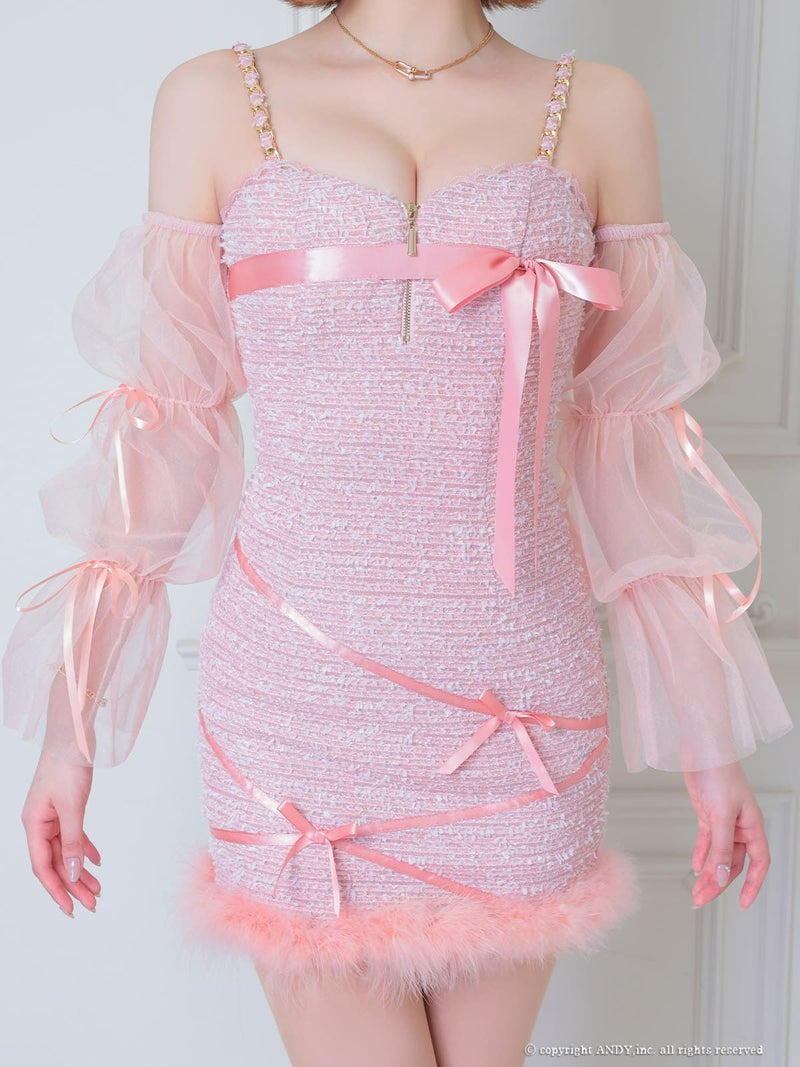 キュート×セクシーを叶える、欲張りリボンドレス♡ [an/アン] 高級 タイト ミニドレス 長袖 谷間 キャミソール 肩出し 二の腕カバー ジップ 2way 取り外し可能