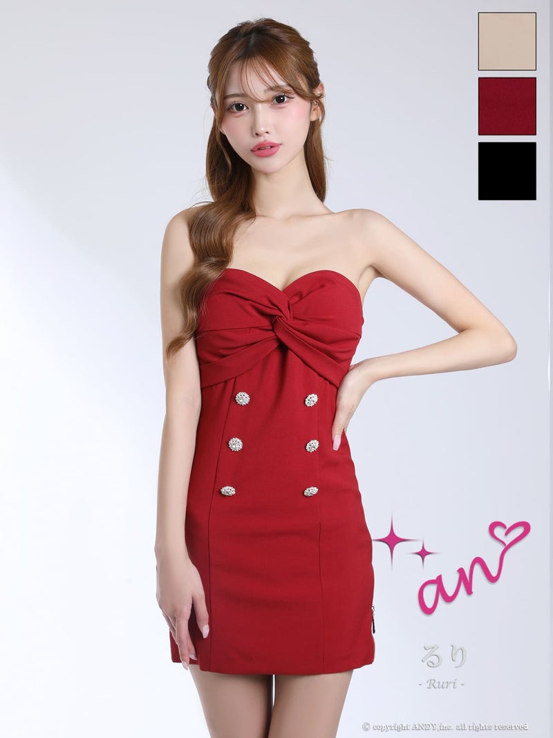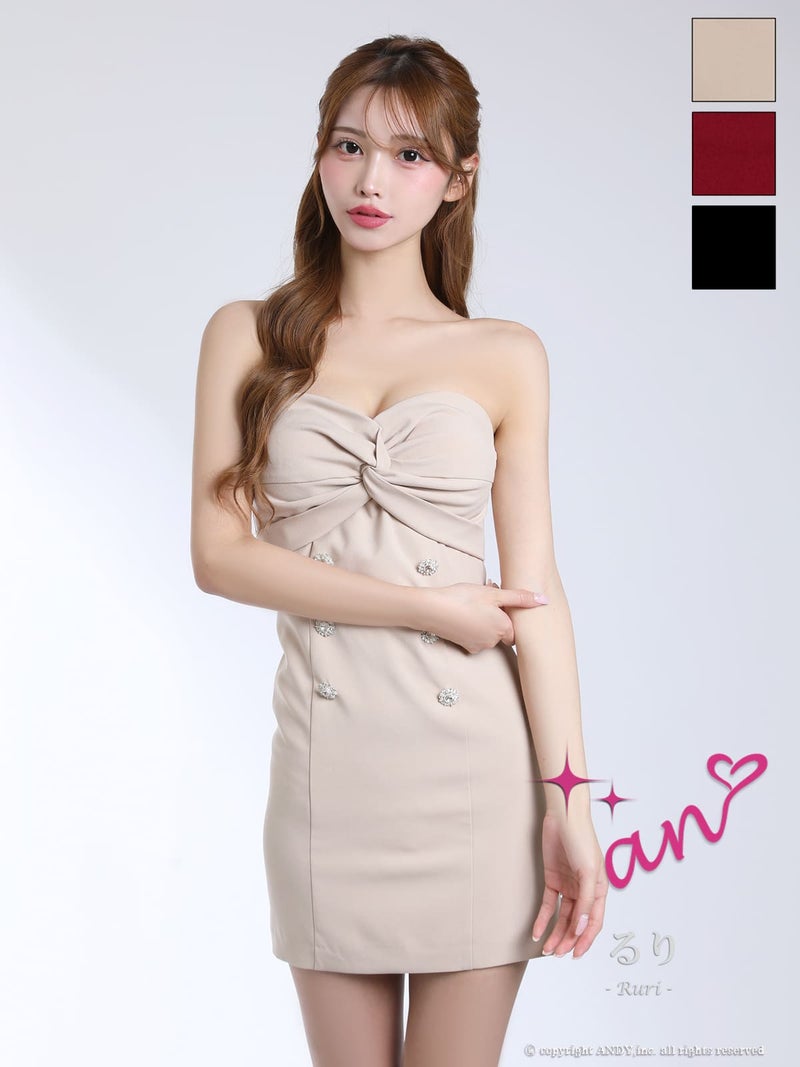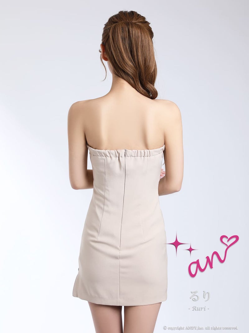 5. [an/アン] 高級 ノースリーブ タイトミニドレス 谷間見せ ワンカラー バストタック