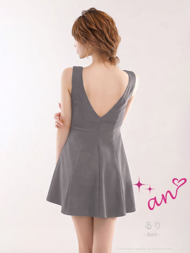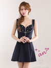5. [an/アン] 高級 ノースリーブ フレアミニドレス ジップ ビジュー リボン バックオープン