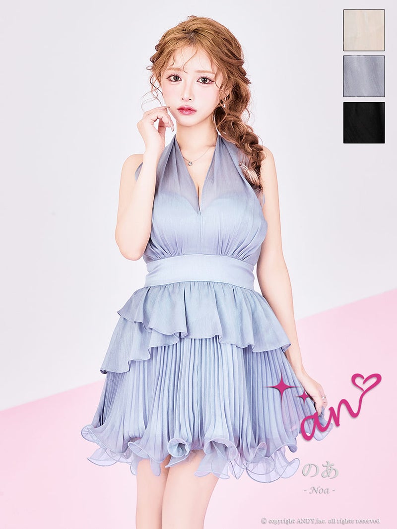 キャバドレス an アン 高級 ホルターネック フレアミニドレス バストカット フリル リボン 背中見せ