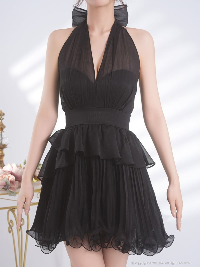 シアーの透け感がセクシー♡ [an/アン] 高級 ホルターネック フレアミニドレス バストカット フリル リボン 背中見せ