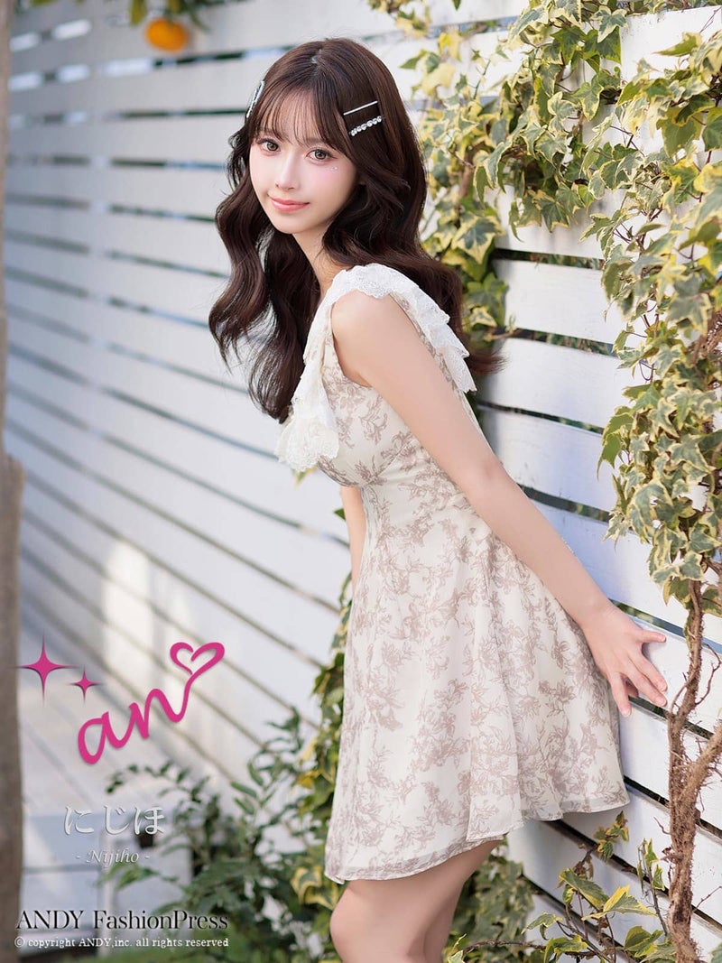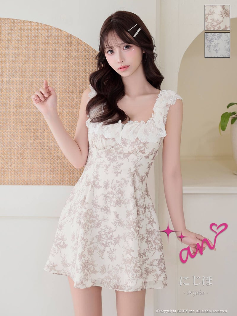 キャバドレス an アン 高級 ノースリーブ フレアミニドレス バストカット ジップ フリル 花柄
