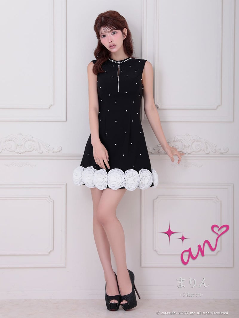 5. [an/アン] 高級 ノースリーブ フレアミニドレス バストカット ジップ ビジュー フラワー