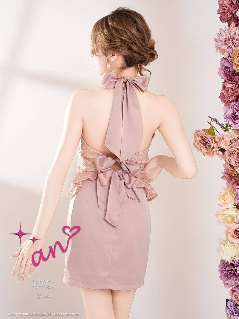 キャバドレス an アン 高級 ホルターネック タイトミニドレス ジップ バストカット リボン ペプラム ツイード フリル