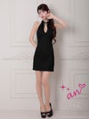 6. [an/アン] 高級 ノースリーブ タイトミニドレス バストカット リボン ハイネック ビジュー ウエストカット