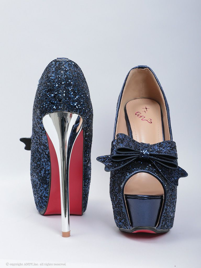キャバドレス an アン 高級リボンモチーフラメグリッターオープントゥキラキラハイヒール