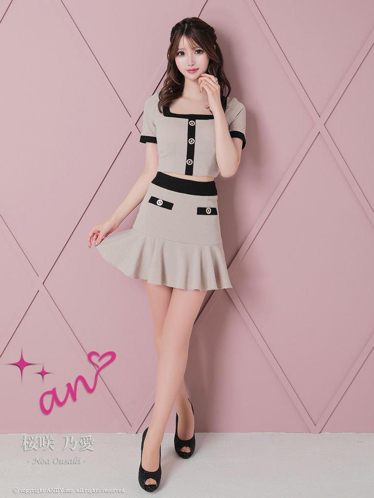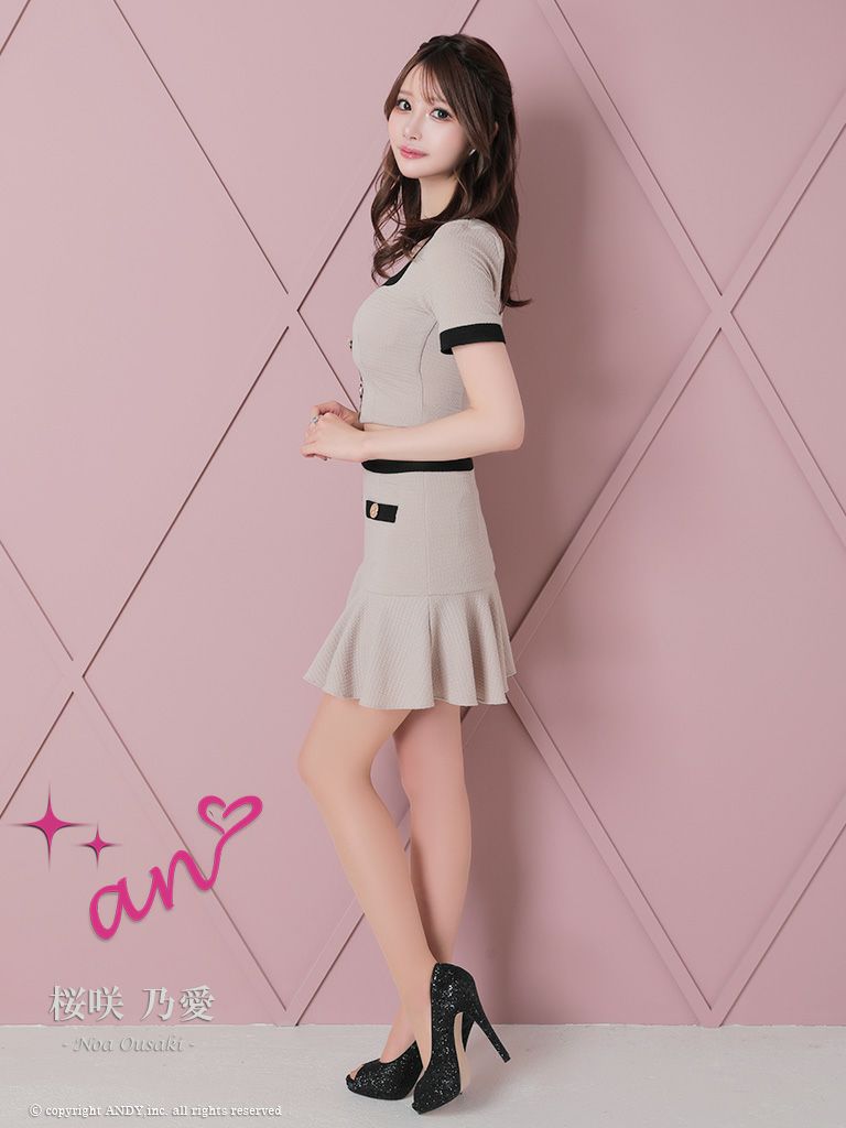 他の画像を見る フリルショルダーが可愛いセットアップ☆ [an/アン] 高級 フリルショルダー ノースリーブ セットアップ 襟付き ジップ チェーンボタン タイトミニドレス ¥ 28,600 税込 在庫切れ お気に入りに追加