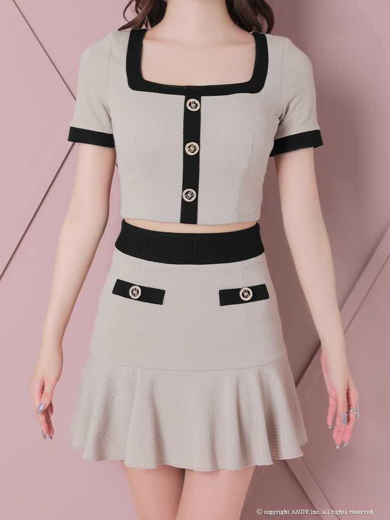 他の画像を見る トレンド感のあるデザインが魅力的な一着☆ [an/アン] 高級半袖ツイードスクエアネックセットアップチェーンゴールドボタンフレアミニドレス ¥ 29,700 税込 在庫切れ お気に入りに追加