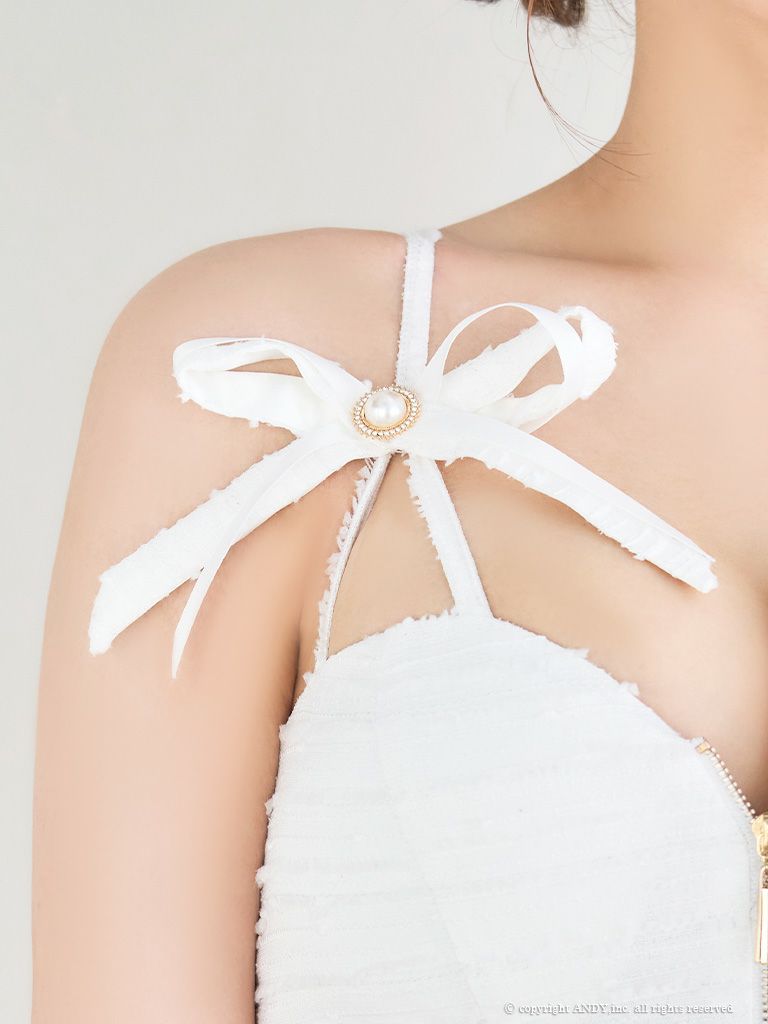 他の画像を見る 大胆な肌魅せが魅力的☆ [an/アン] 高級 ツイード キャミソール くびれ ショルダーリボン チェーン バストカット 谷間魅せ タイトミニドレス ¥ 26,400 税込 在庫切れ お気に入りに追加
