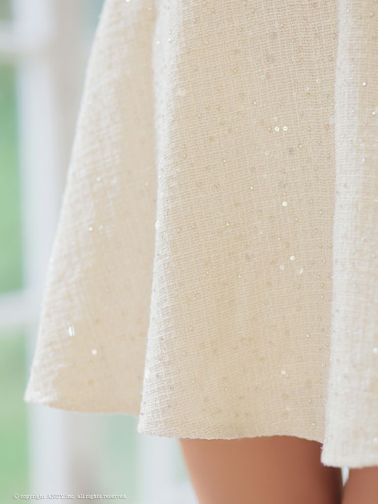 他の画像を見る スパンコールが煌めくミニドレス☆ [an/アン] 高級 ノースリーブ ジップ スパンコール ツイード ショルダーリボン バストカット 谷間魅せ フレアミニドレス ¥ 29,700 税込 在庫切れ お気に入りに追加