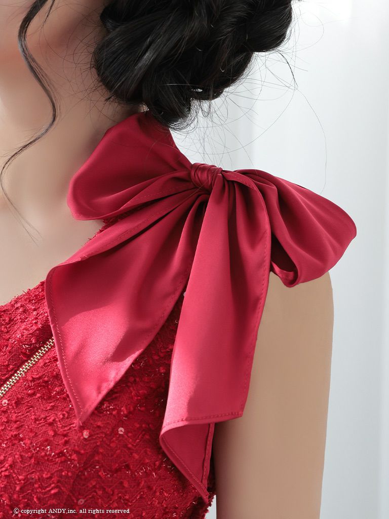 他の画像を見る ツイード素材で高級感溢れる☆ [an/アン] 高級 ワンショルダー ジップ ツイード リボン パールショルダー付き ファスナースリット タイトミニドレス ¥ 27,500 税込 在庫切れ お気に入りに追加