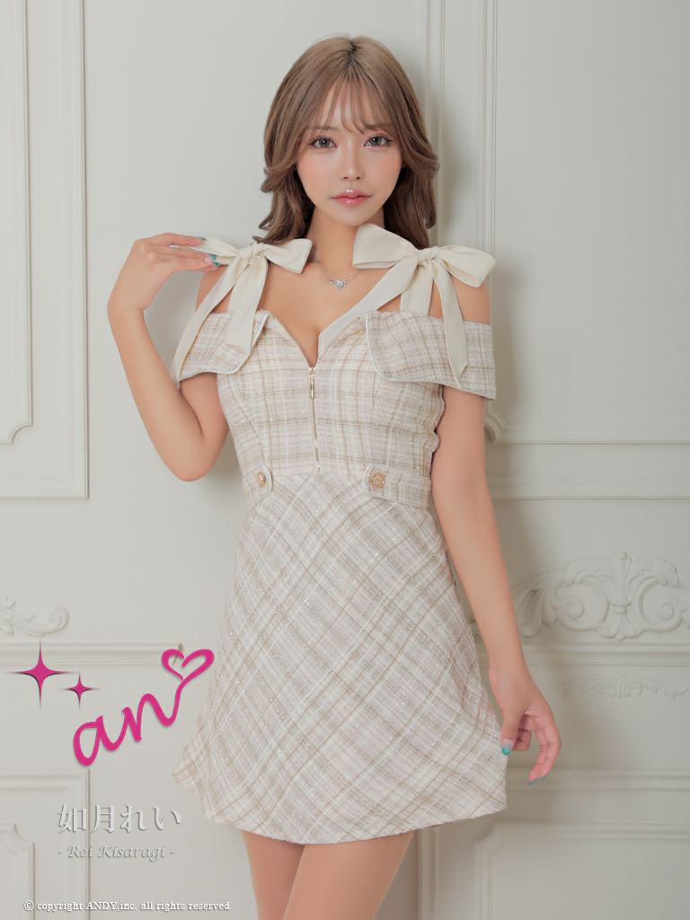 他の画像を見る ガーリーなデザインがポイント☆ [an/アン] 高級ショルダー ビジュー キャミソール リボン ストレッチ ツイード ジップ タイトミニドレス ¥ 27,500 税込 在庫切れ お気に入りに追加