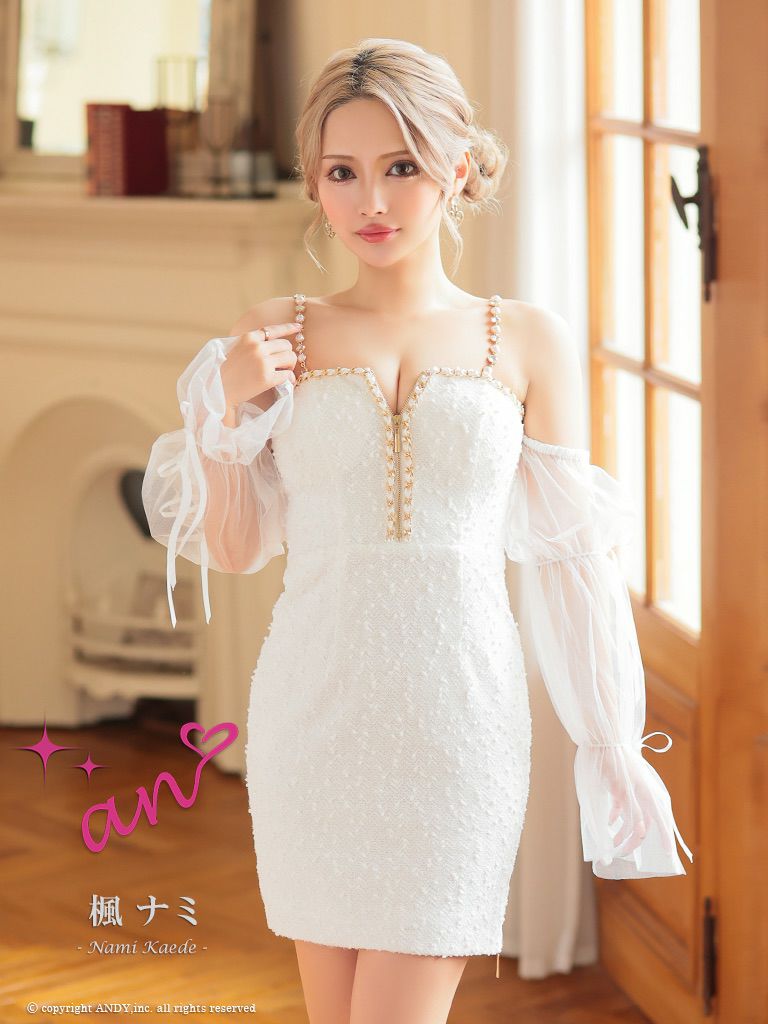 他の画像を見る 谷間魅せで周囲の視線を惹きつける☆ [an/アン] 高級肩出し 二の腕カバー ジップ ツイード 長袖 袖あり シフォンスリーブ リボン パール タイトミニドレス ¥ 27,500 税込 在庫切れ お気に入りに追加