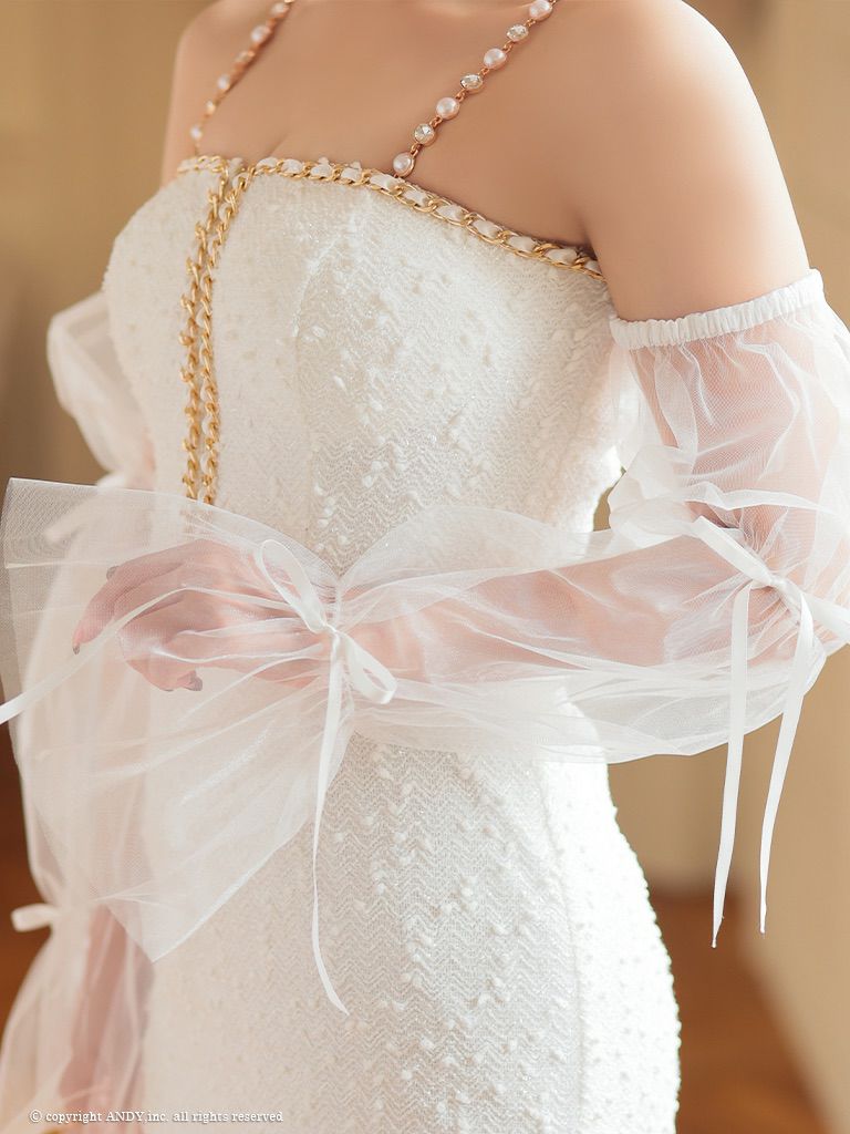 他の画像を見る パールのデザインが可愛い☆ [an/アン] 高級肩出し 二の腕カバー ジップ ツイード 長袖 袖あり シフォンスリーブ リボン パール タイトミニドレス ¥ 27,500 税込 在庫切れ お気に入りに追加