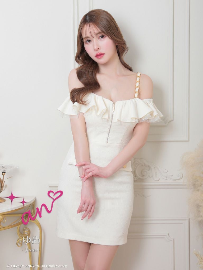 他の画像を見る レザーチェーンの肩紐がアクセント★ [an/アン] 高級ツイード キャミソール リボン オフショルダー フロントジップ セットアップ タイトミニドレス ¥ 28,600 税込 在庫切れ お気に入りに追加
