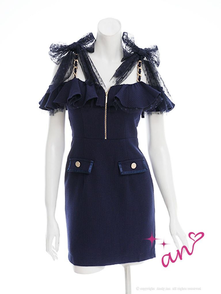 他の画像を見る ツイードの素材が可愛すぎる☆ [an/アン] 高級肩出し 二の腕カバー ジップ ツイード ボタン ショルダー リボン チェーン タイトミニドレス ¥ 27,500 税込 在庫切れ お気に入りに追加