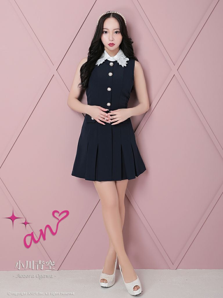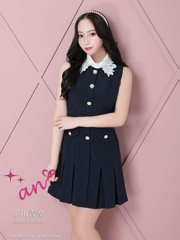 他の画像を見る パールボタンでフェミニンな印象に♪ [an/アン] 高級 プリーツ ノースリーブ 襟付き パールボタン フェイクポケット フレアミニドレス ¥ 27,500 税込 在庫切れ お気に入りに追加