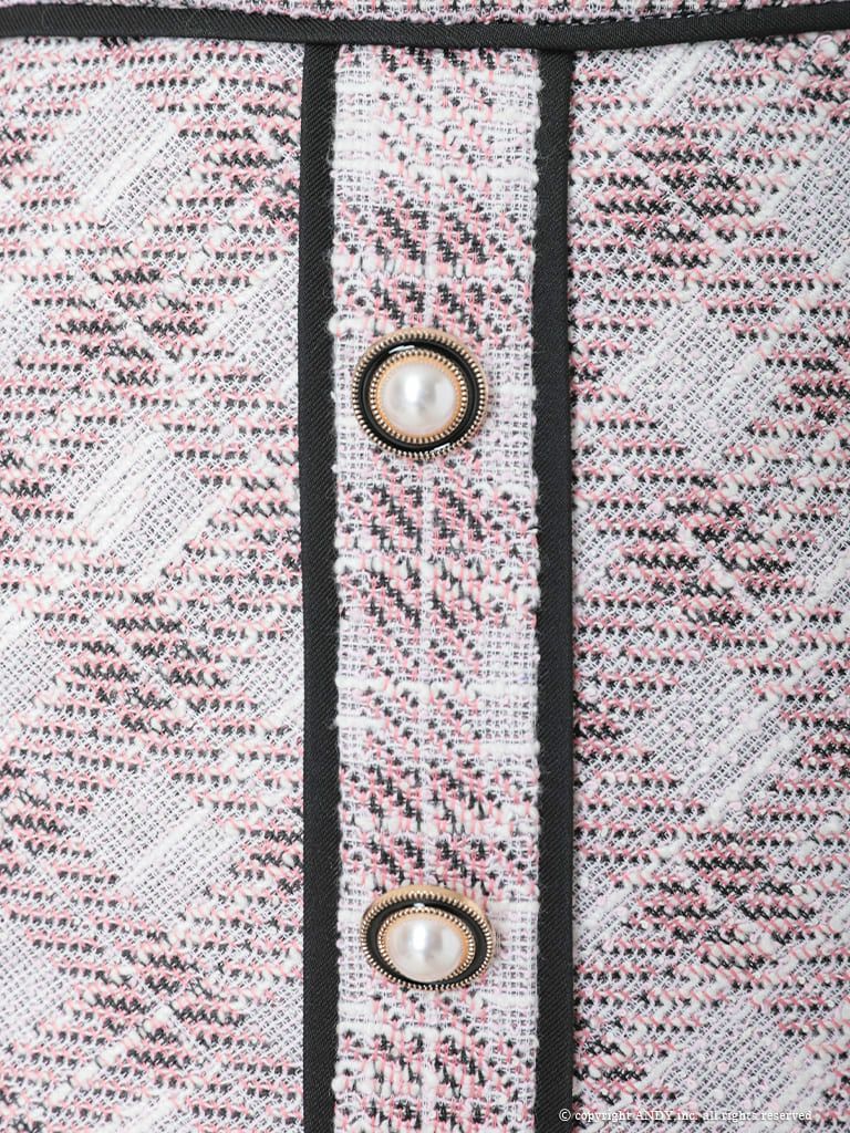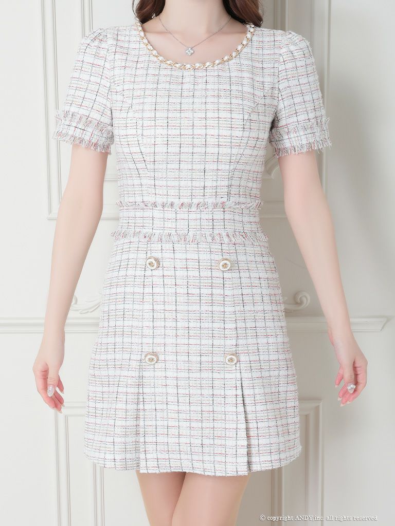 他の画像を見る ツイード生地のチェック柄がガーリー★ [an/アン] 高級キャミソール パール肩紐 セットアップ ハーフフロントジップ ツイード プリーツ フレアミニドレス ¥ 27,500 税込 在庫切れ お気に入りに追加