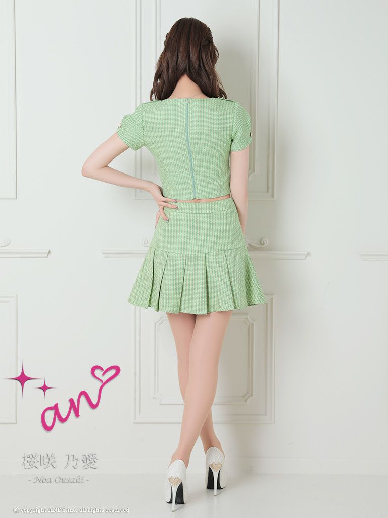 他の画像を見る ウエスト魅せでスタイル爆盛れ☆ [an/アン] 高級キャミソール パール肩紐 セットアップ ハーフフロントジップ ツイード プリーツ フレアミニドレス ¥ 27,500 税込 在庫切れ お気に入りに追加