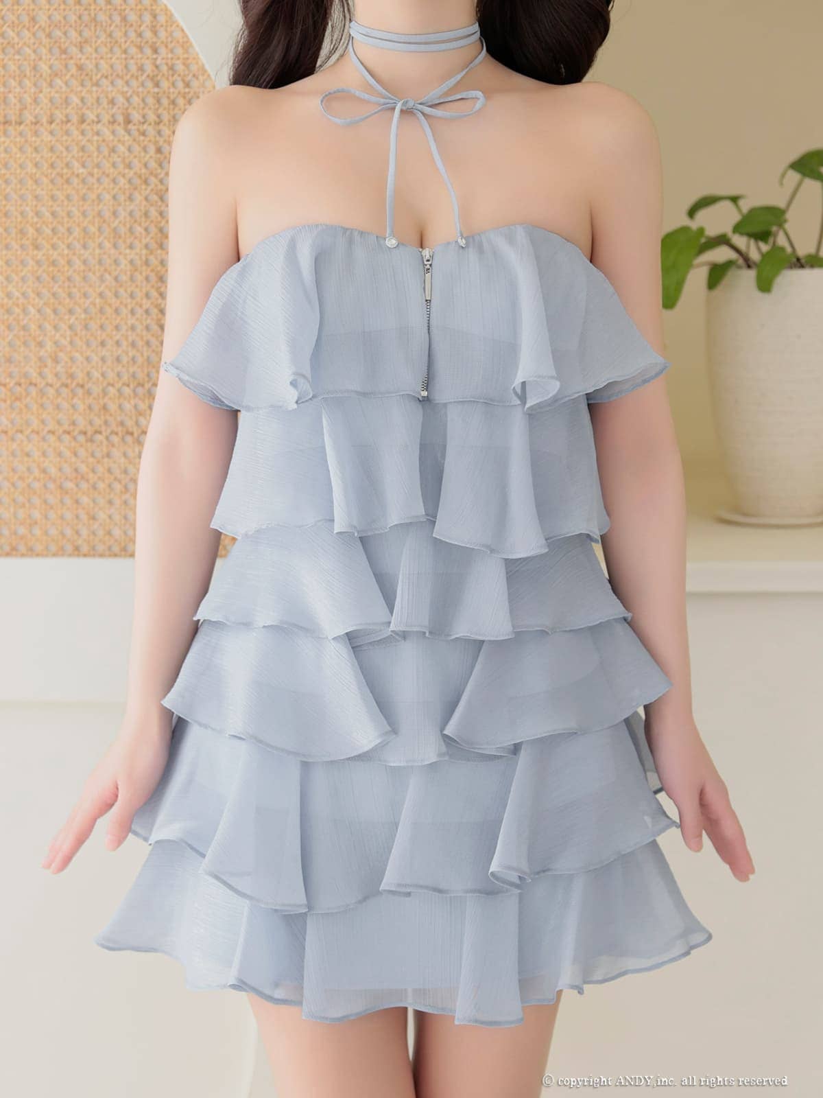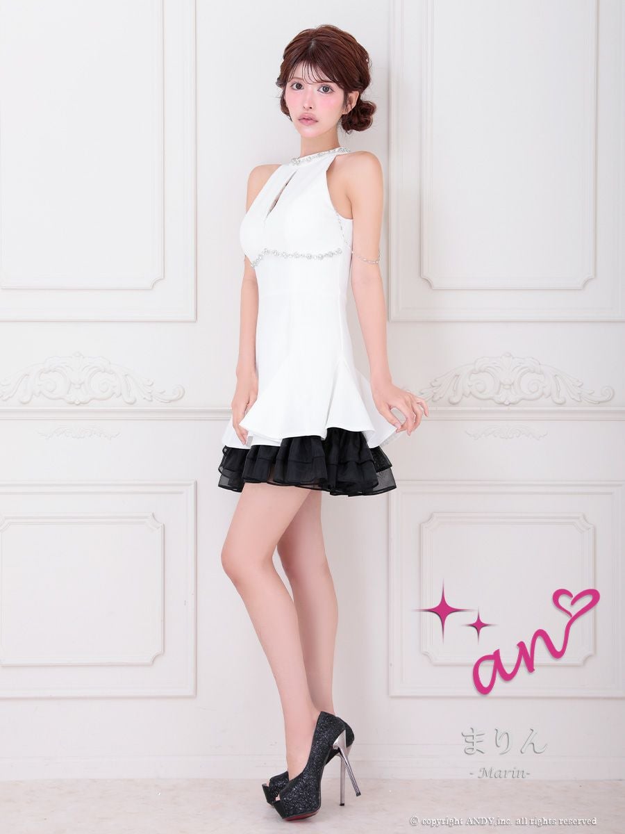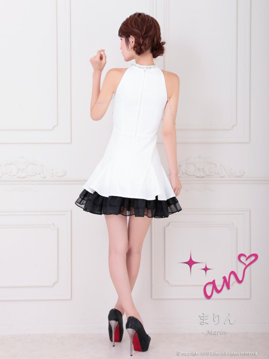 他の画像を見る 谷間をセクシーに魅せる♡ [an/アン] 高級 Aライン ミニドレス 谷間 ホルターネック ジップ チュール 裾フリル ビジュー チェーン バストカット ¥ 28,600 税込 お気に入りに追加
