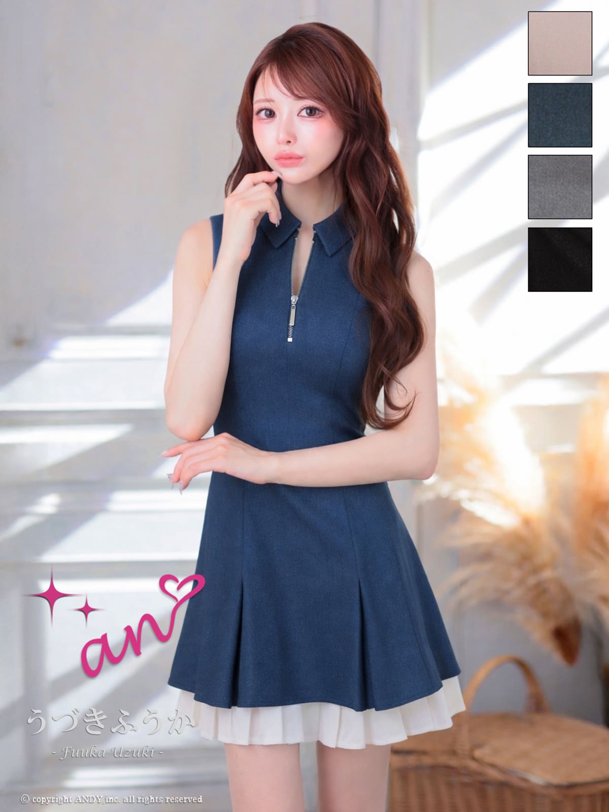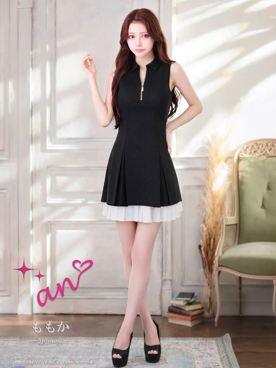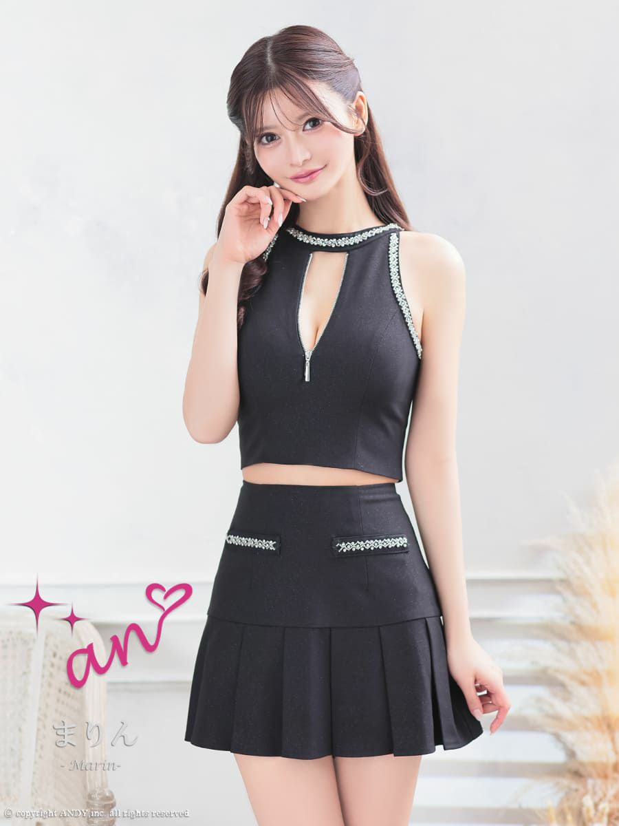 他の画像を見る 今っぽさ溢れるセットアップ♡ [an/アン] 高級 ブランド フレアミニドレス セットアップ ノースリーブ ジップ 襟付き プリーツ ビジューボタン ¥ 28,600 税込 お気に入りに追加