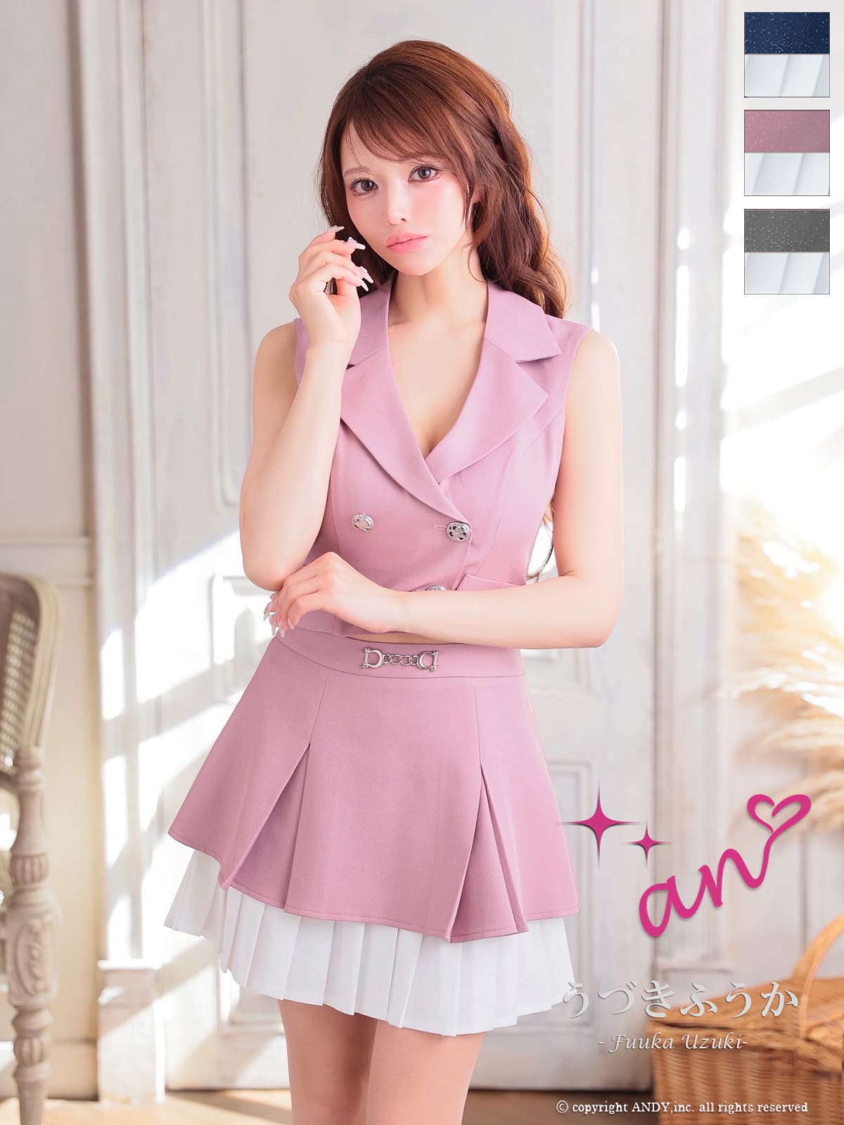 他の画像を見る 甘くなり過ぎない最適なバランスのセットアップ♡ [an/アン] 高級 ノースリーブ フレアミニドレス バストカット セットアップ ウエストベルト ¥ 28,600 税込 お気に入りに追加