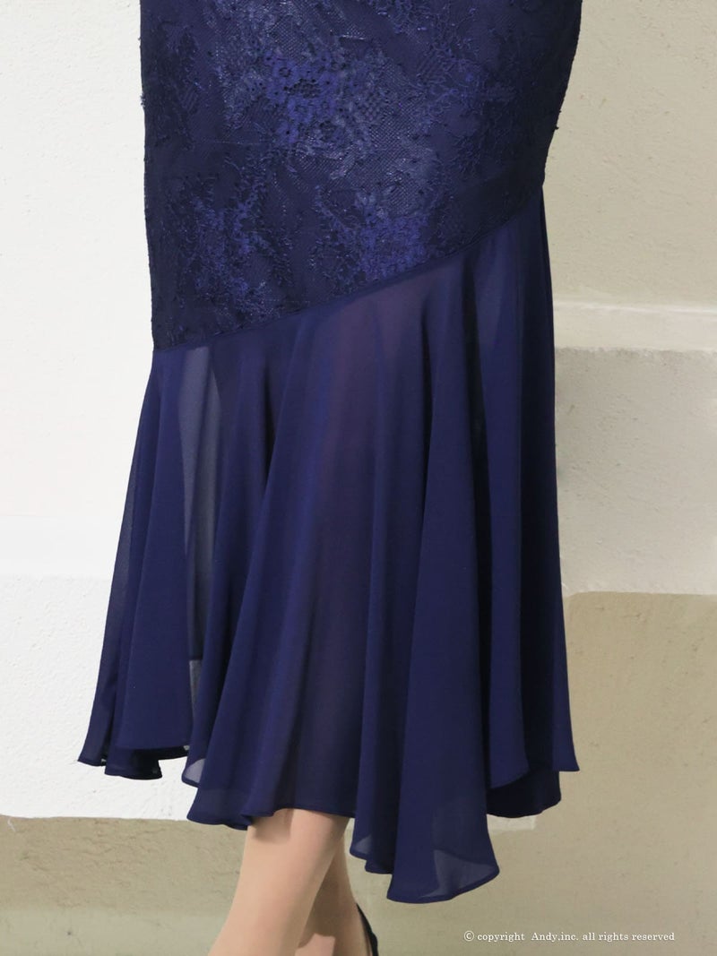 5. [Andy/アンディ] 高級 オフショルダー タイトロングドレス バストカット ジャガード ワンカラー フリル