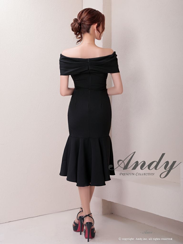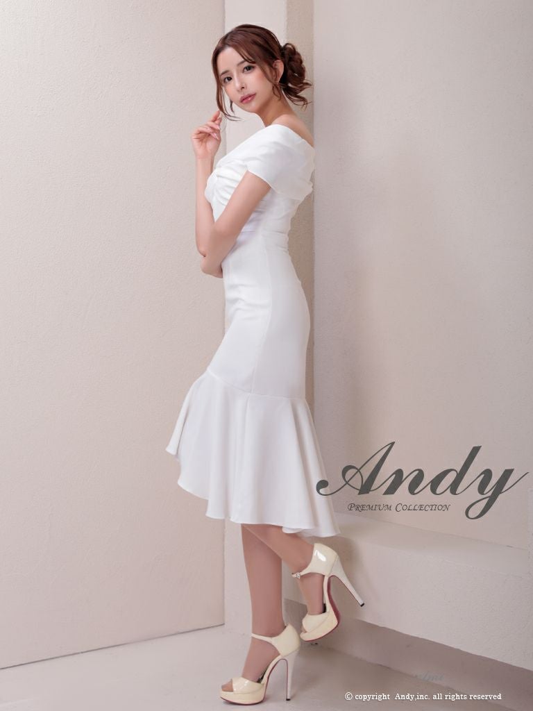 シンプルでスタイリッシュなドレス☆ [Andy/アンディ] 高級 オフショルダー マーメイド シンプル ワンカラー バストカット 谷間魅せ ロングテールドレス