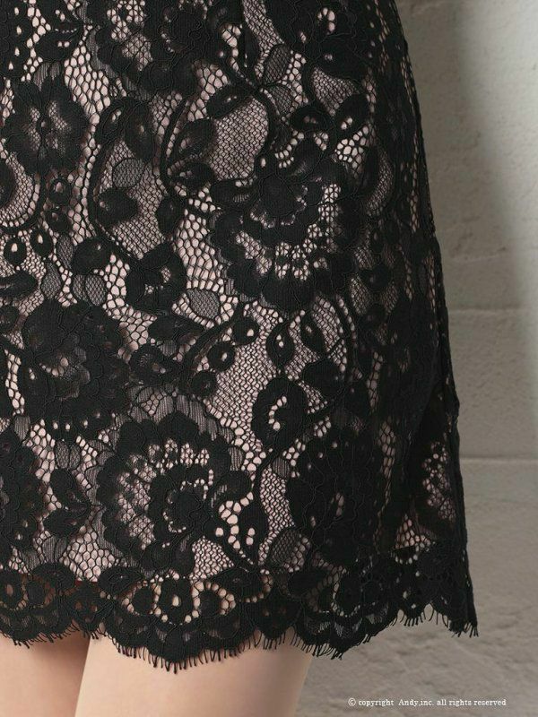 5. [Andy/アンディ] 高級胸元フリルネックリボン総レースバイカラー半袖タイトミニドレス