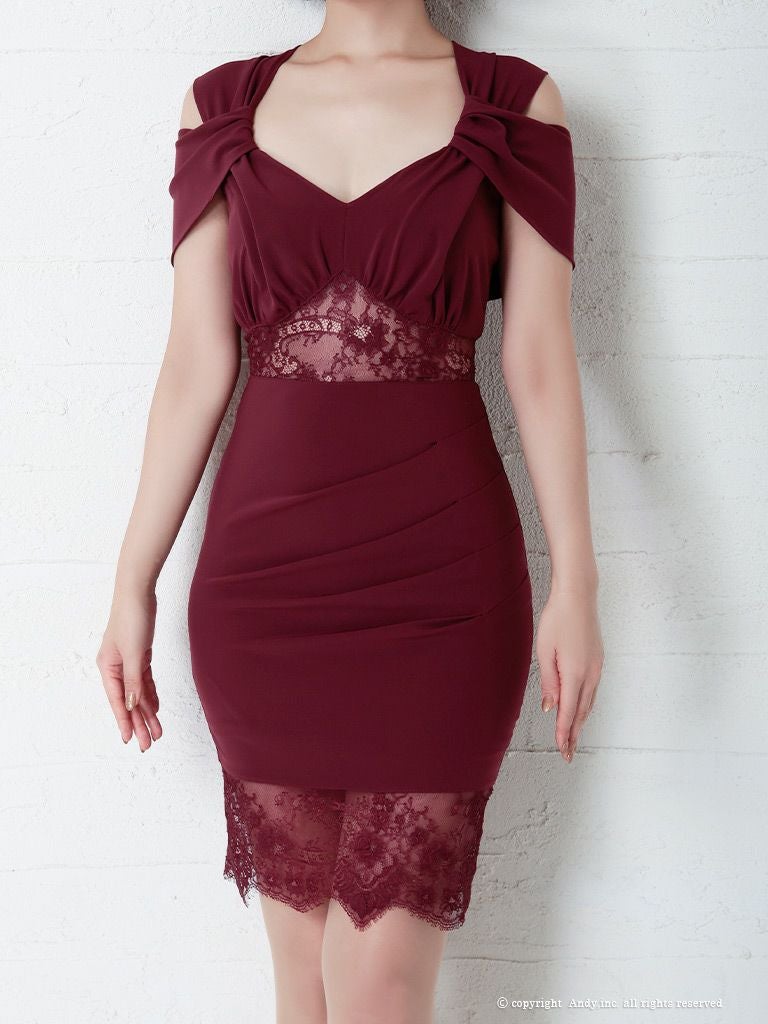 キャバドレス Andy アンディ 高級フラワーレース肩あきシースルータイトミニドレス